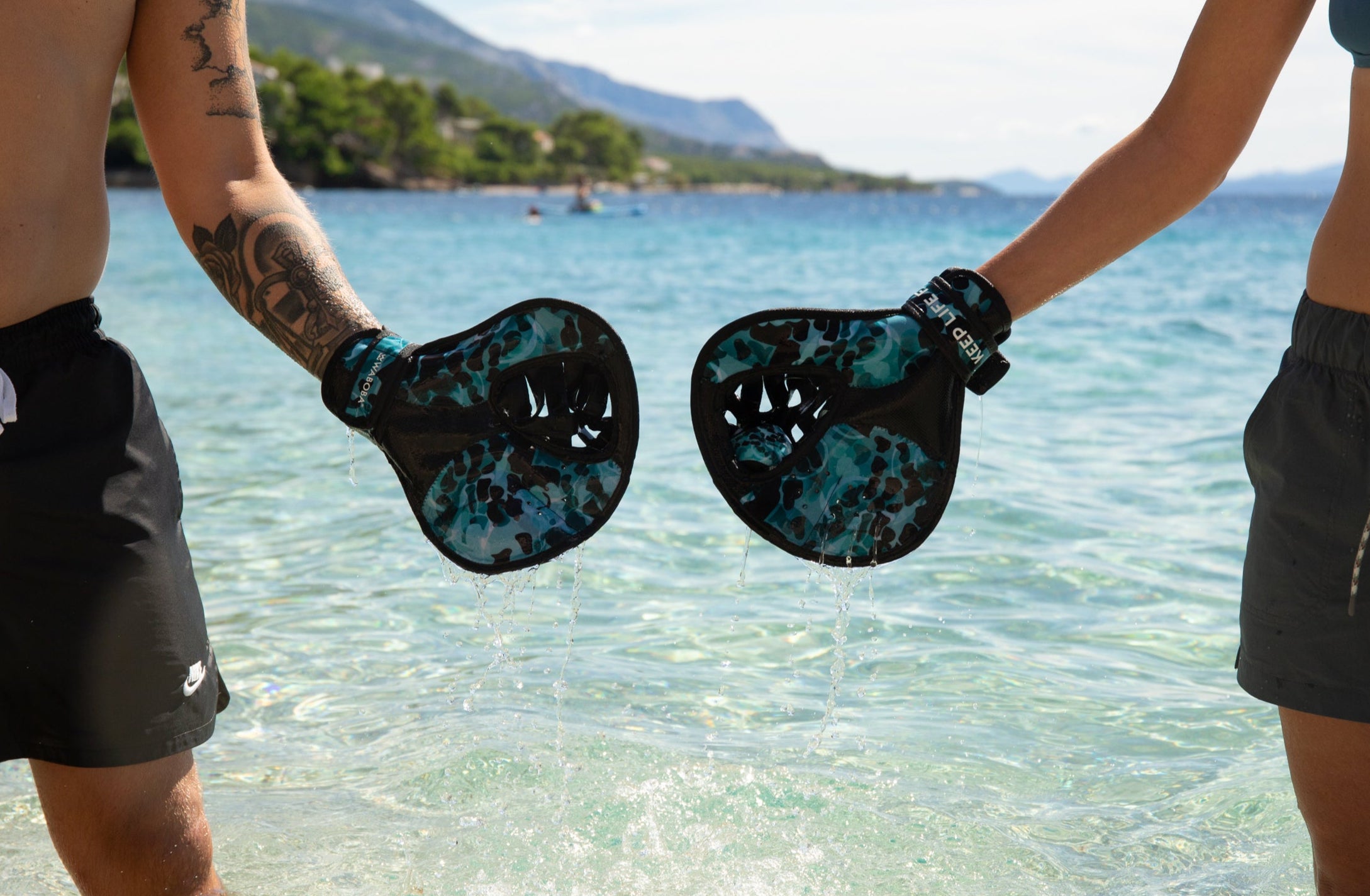 The ultimate Catch game for the water! The Waboba Catch glove features a 100% ambidextrous design, and is the only baseball style glove made for water play. The two glove pack comes with a Waboba Pro ball, which is made to bounce on water. Throw it back and forth to catch it as it skips off the surface of water. Create new games and play over longer distances!